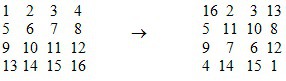 Дан магический квадрат из 16 клеток есть 16 цифры от одного до 16 чтобы заполнить квадрат чтобы по горизонтали и по вертикали цифры составляли число 34