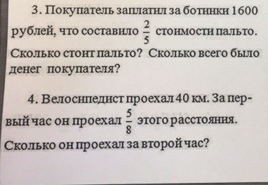Если 1600 это 2 части из 5, то 4 части будут равны 1600+1600=3200; у нас осталась одна часть => 3200+½1600=3200+800=4000 стоило пальто; а всего денег 1600+4000=5600р