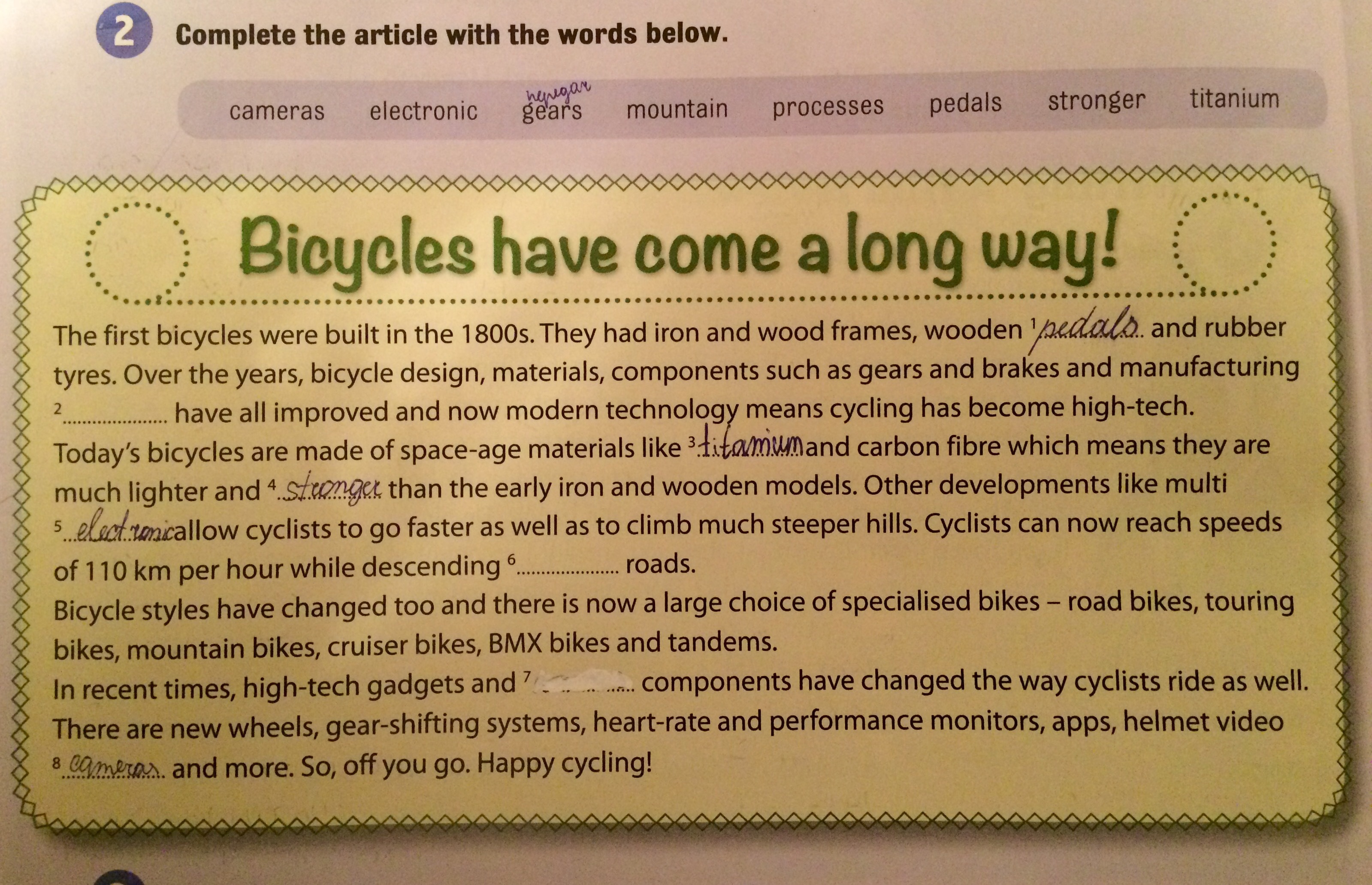 2. Processes 5. Gears 6. Mountain 7. Electronic. Остальное все правильно