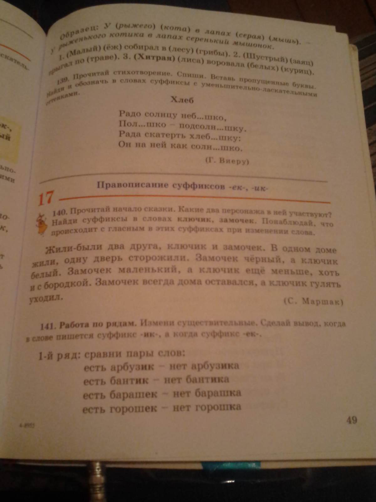 Прочитай начало сказки. Какие два персонажей в ней участвуют? Найди суффиксы в словах ключик, замочек. Понаблюдай, что происходит с гласной в этих суффиксах при изменении слова