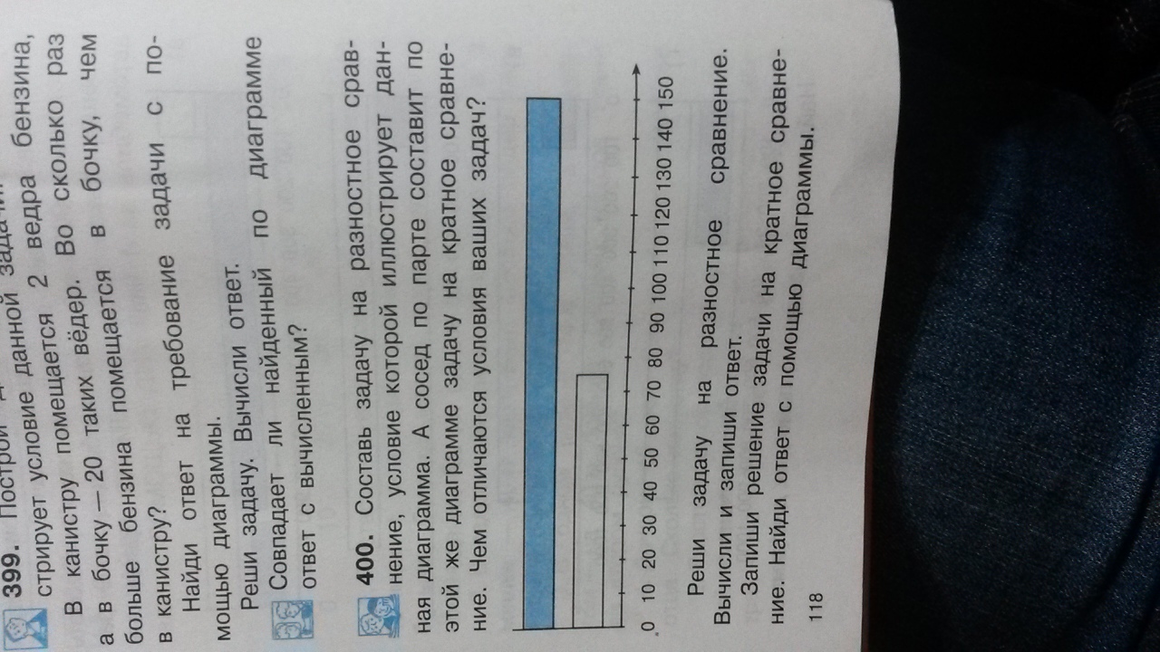 математика 3 класс А.Л Чекин. Упр.400. Составь задачу на разностное сравнение, условие которой иллюстрирует данная диаграмма.