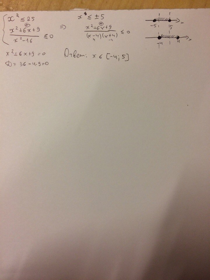 ну смотри там где х квадрат х равно 5( так как 5 умножить на 5 =25) а где побольше уравнение ниже х не равно 4 так как 4 умножить на 4 равно 16 а 16-16 будет 0