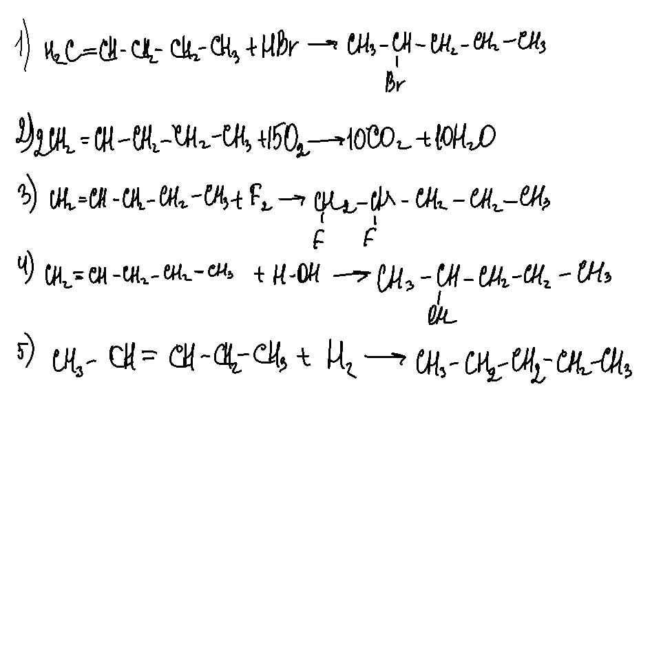1) пентен-1 + HBr