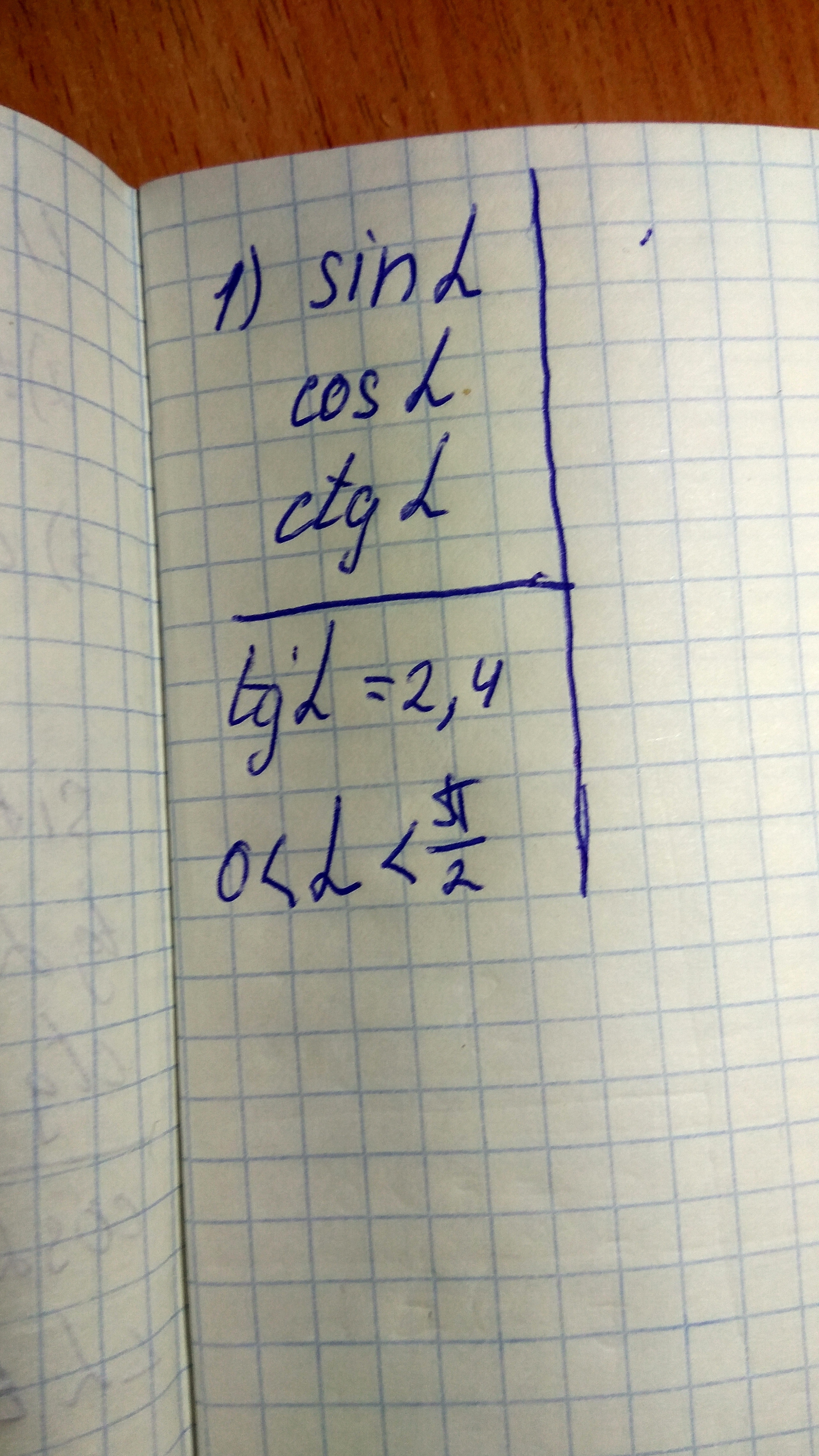 sinα=2.4*√(1-sin²α) возведем в квадрат