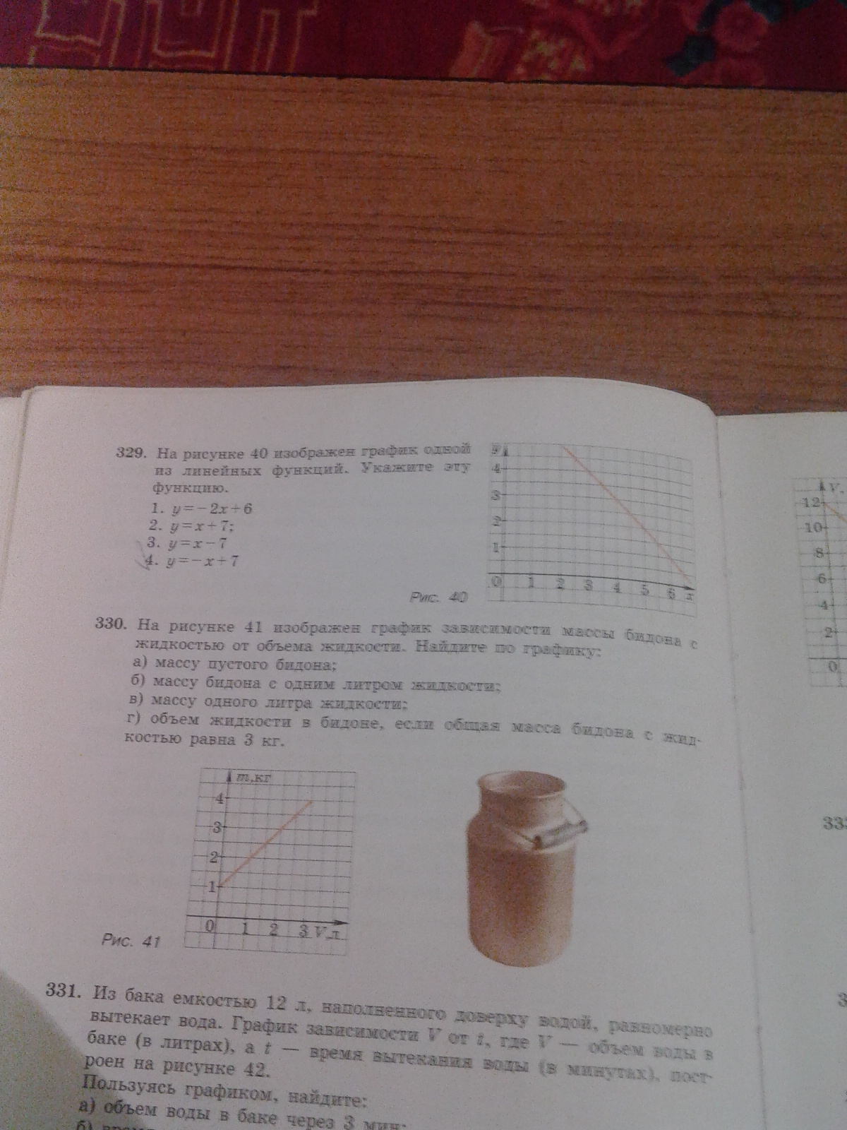 смотрим на график. он идёт вниз, а не вверх, значит х с минусом. на каждую клеточку х график опускается на одну клеточку по у, значит просто -х, т. е. уже виден ответ. При у=0 х=7, что подтверждает версию 4.