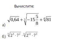 √0,64+∛-5*5/8+4√81=0,8-2,5+3=1,3 4 перед корнем это корень 4 степени из 81(в приложении нет корень ч степени)