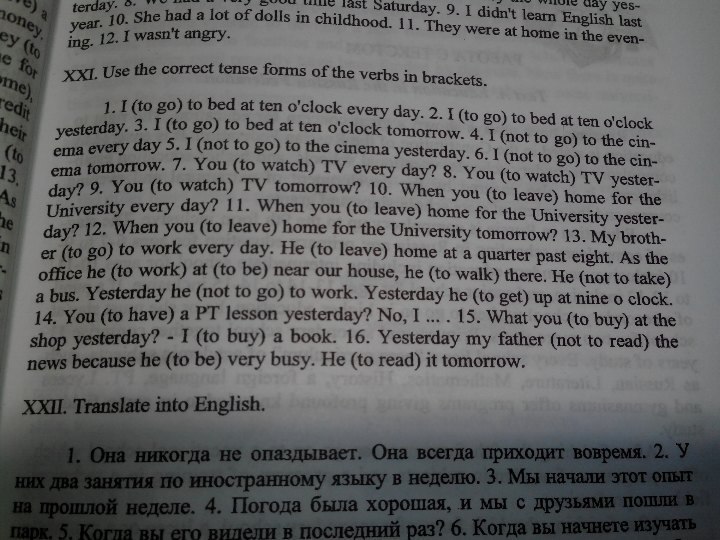1)go 2)went 3)will go 4)do not 5)did not 6)will not go 7)Do you watch 8)Did you watch 9)will you watch 10)leave 11)left 12)will leave 13)goes; leaves; works; is; walks; does not take; did not go; got 14)Did you have 15)What did you buy; bought 16) did not read; was; will read