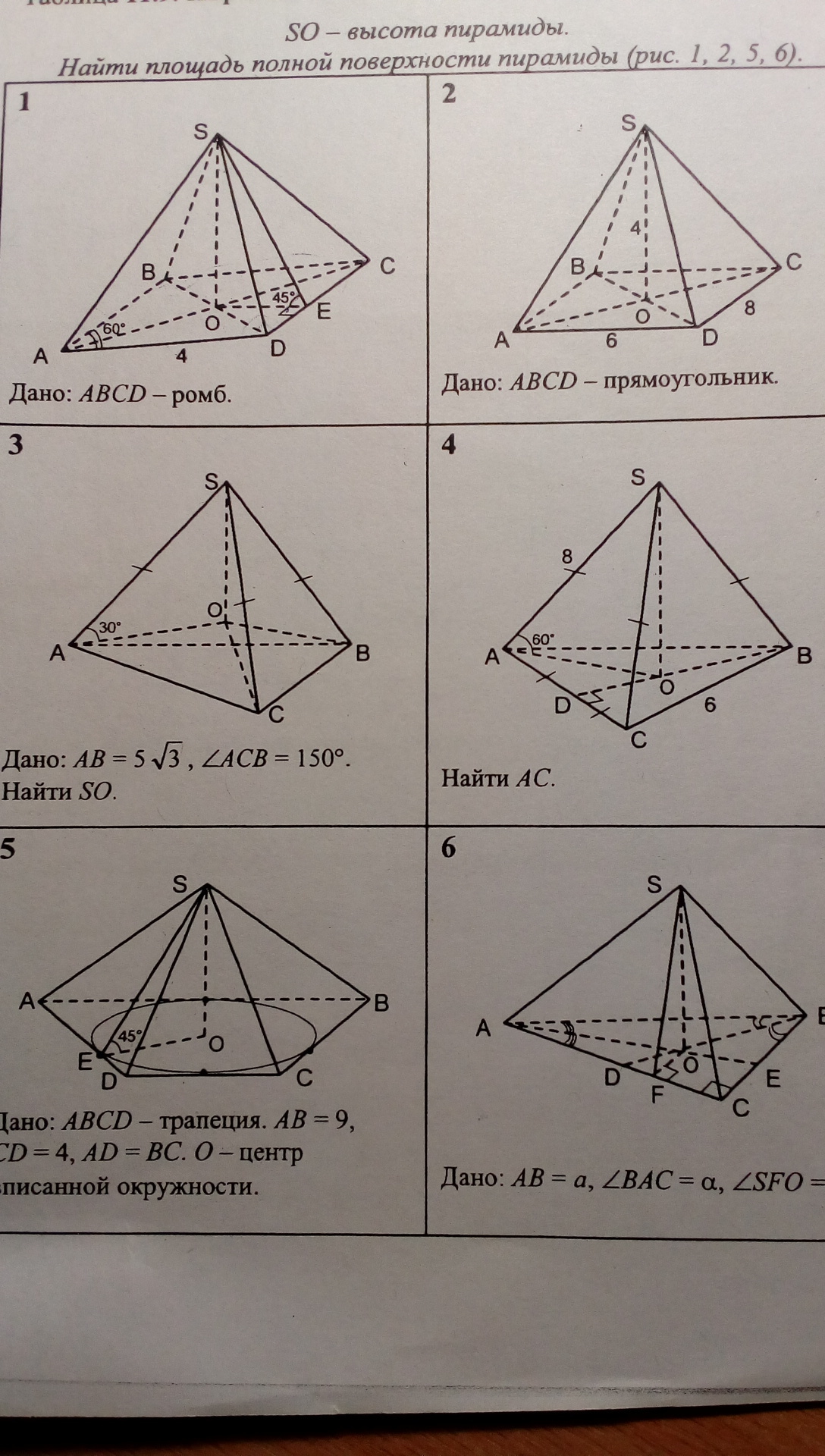 Из треугольника ASO находим SO = SА*tg30° = 5√3*(1/√3) = 5.