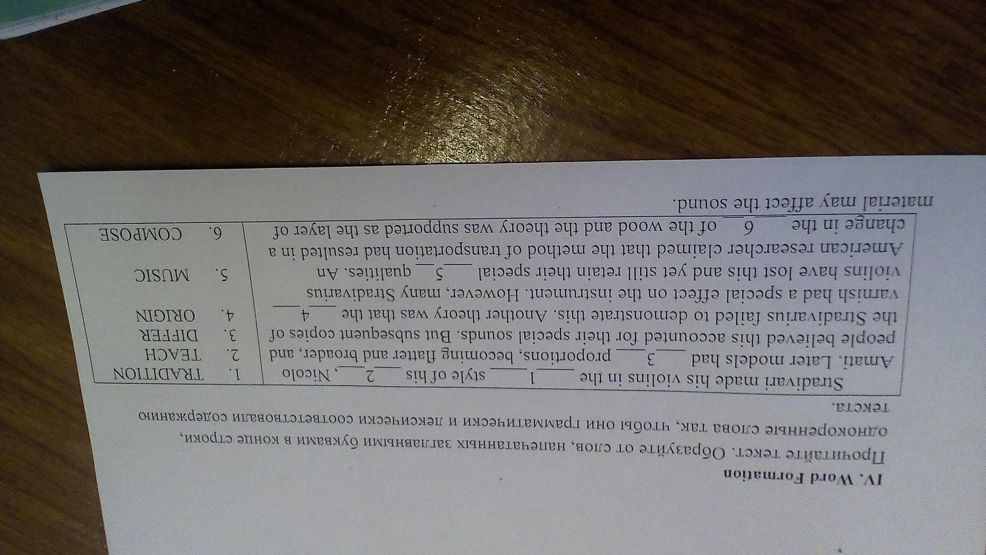 1. Traditional 2. Teacher 3. Different 4. Original 5. Musical 6. Composition