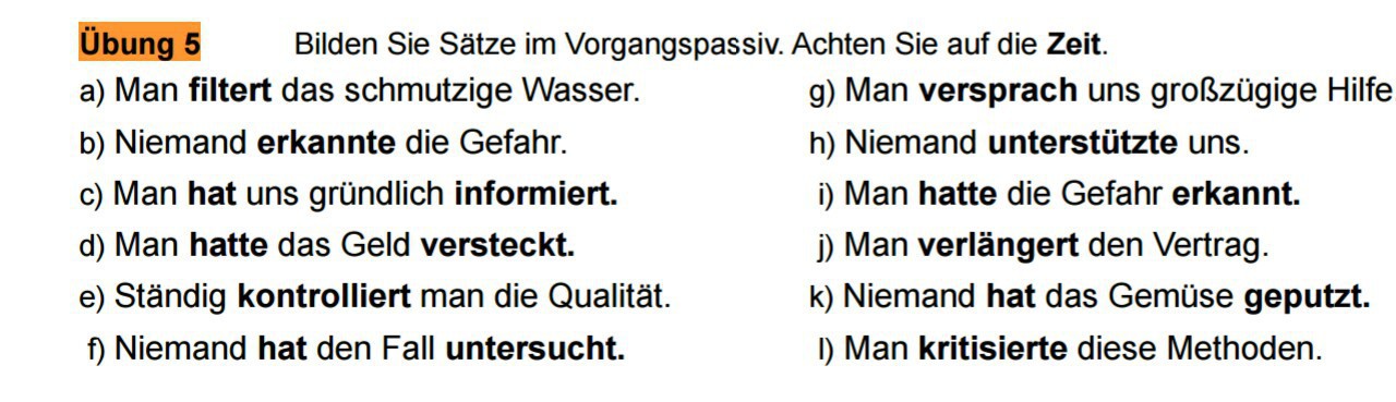 Bilden Sie Sätze im Vorgangspassiv. Achten Sie auf die Zeit.