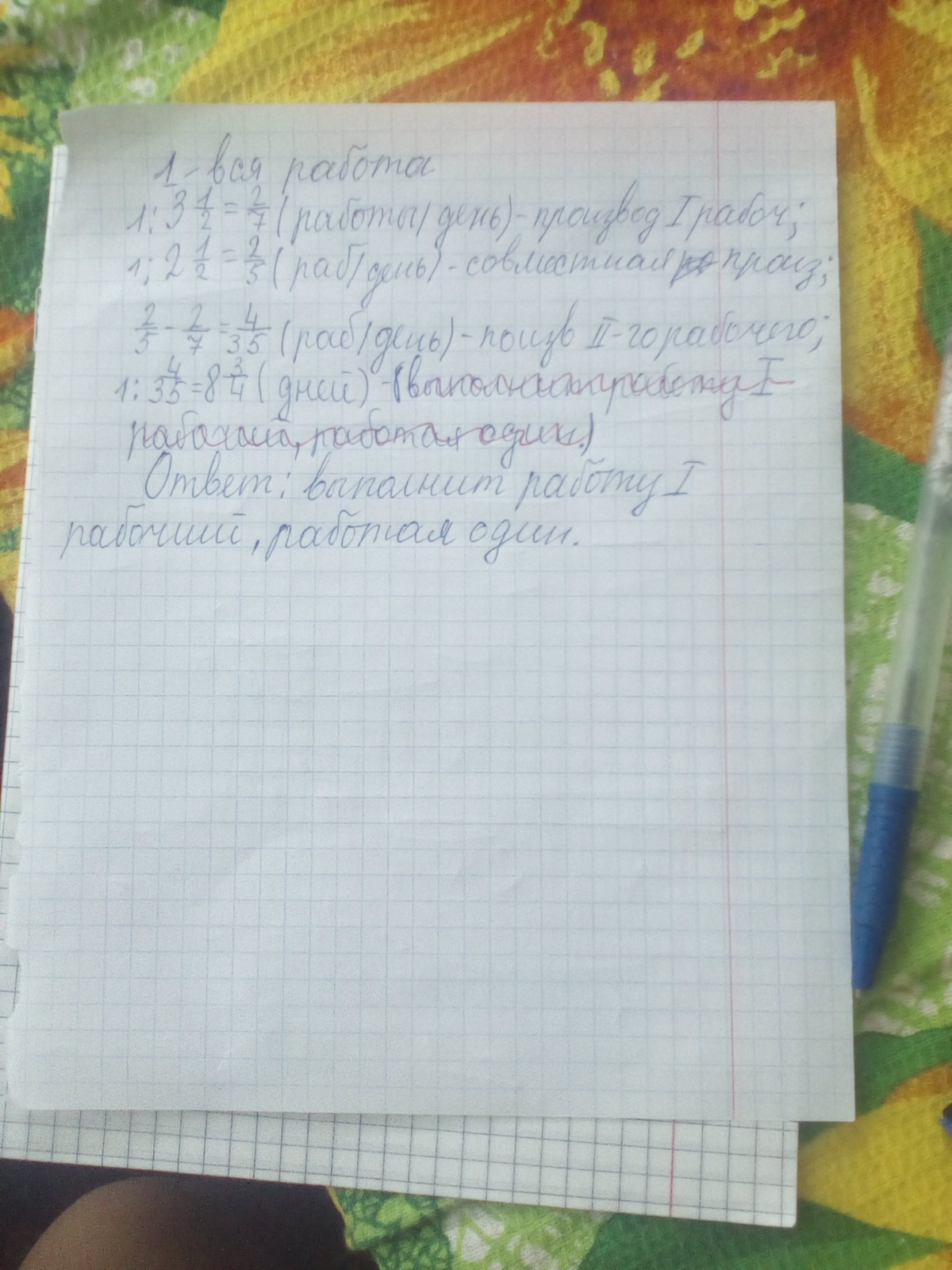 Первый рабочий работая один выполняет некоторую работу за 3,5 дня, а работая совместно со вторым рабочим выполняет эту же работу 2,5 дня. За сколько дней выполнят эту работу второй рабочий работая один .