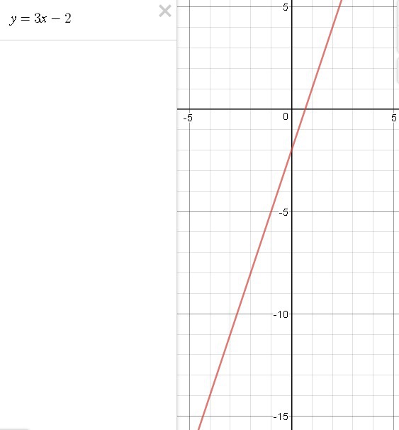 Y=3x-2 при х=0 у=-2 при у=0 х=2/3=0,67