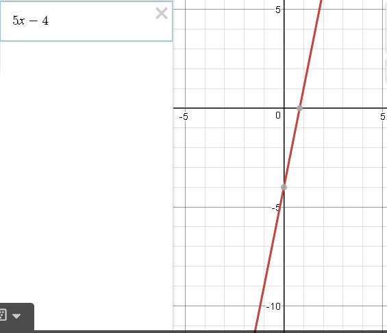 У=5x-4 при х=0 у=-4 при у=0 х=4/5=0,8