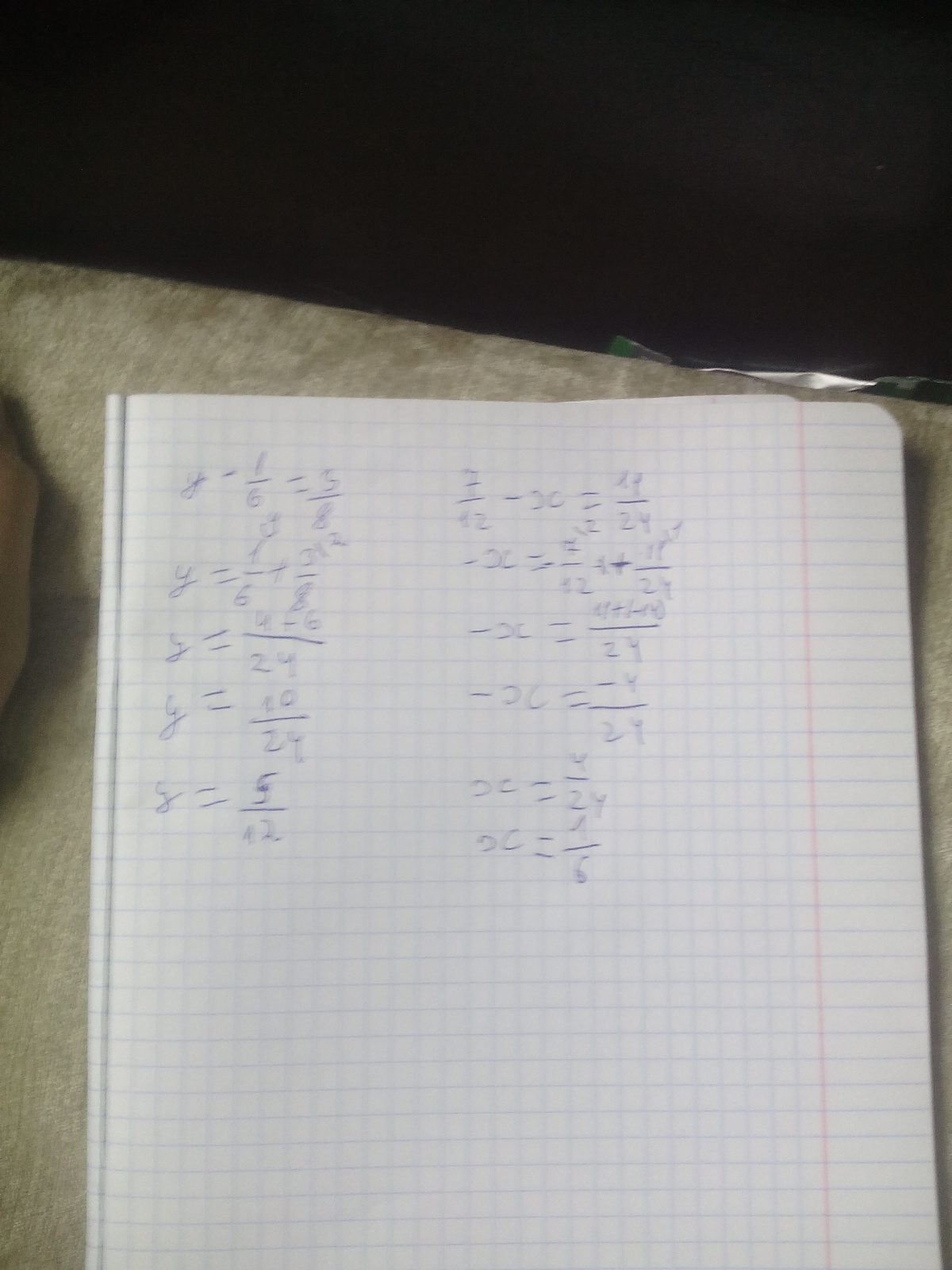 y=1/6+3/8=13/24 ответы 13/24 и 1/6