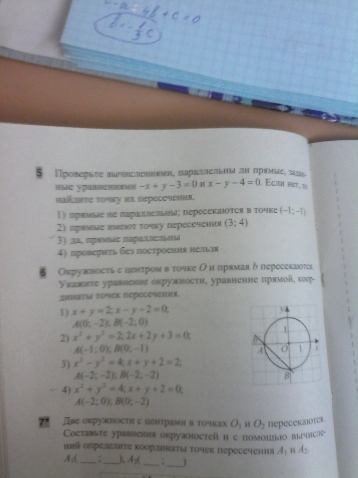 проверьте вычислениями, параллельны ли прямые, заданные уравнениями -x+y-3=0 и x-y-4=0. если нет, то найдите точку их пересечения