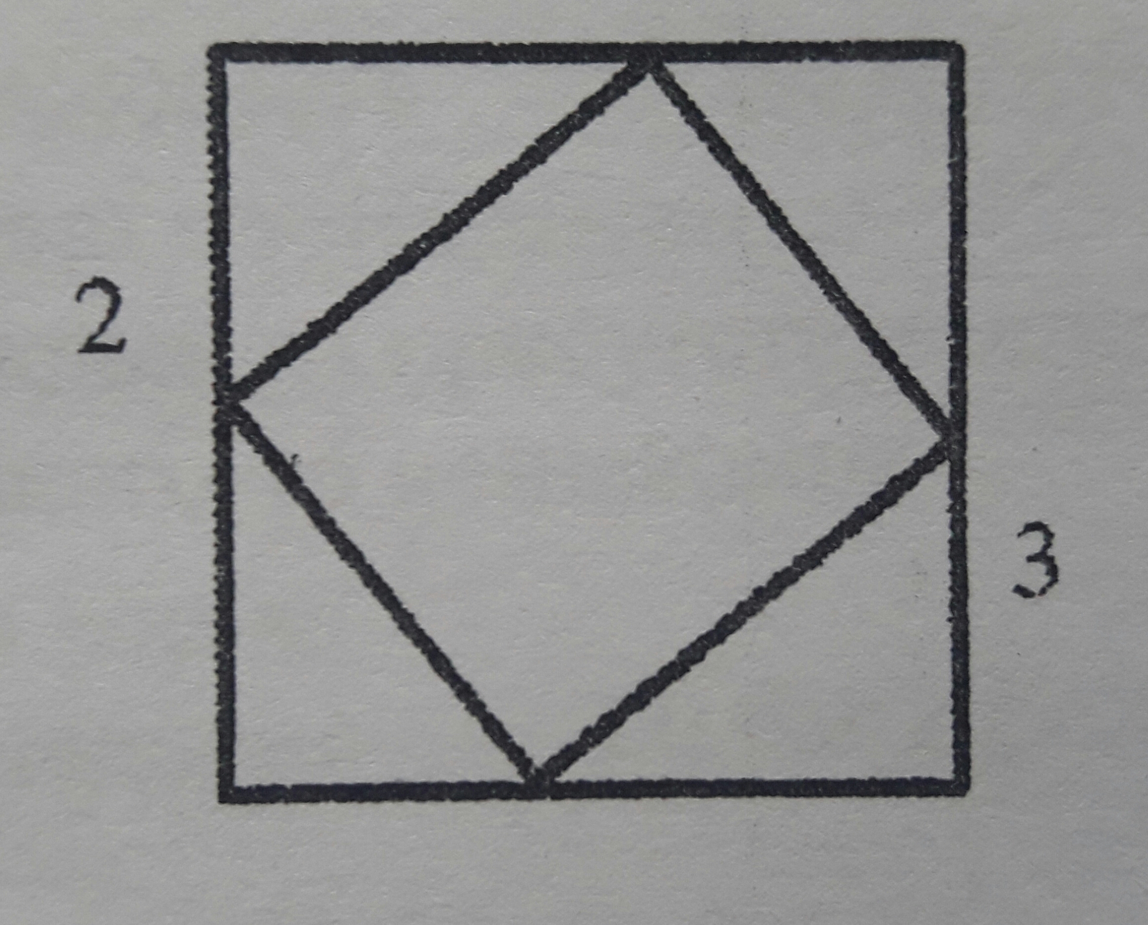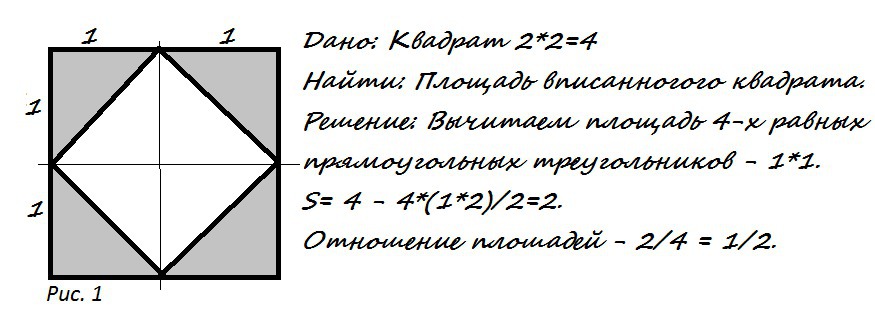 Если квадрат вписан в квадрат, то его площадь будет равна половине площади квадрата и тогда стояли бы цифры у сторон 1:1.