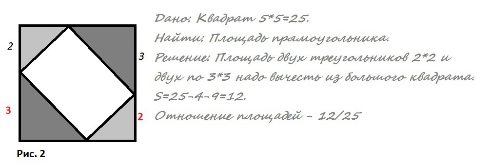 В квадрат в писан в прямоугольник. Решение на рис. 2 и