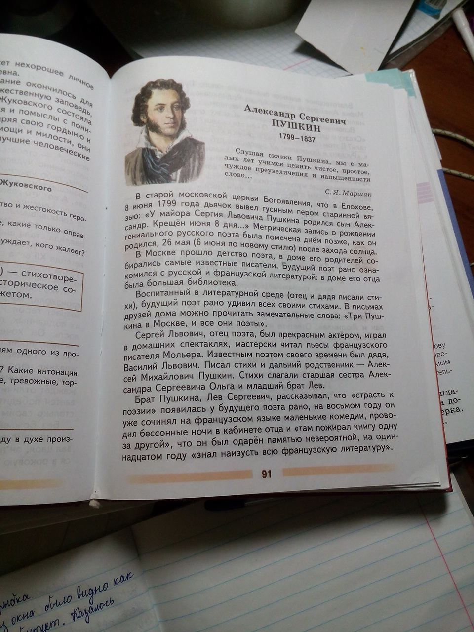 В их доме, точнее, в квартире, которую снимали родители Пушкина, собирались поэты, художники, музыканты. Общая галломания, господствовавшая в обществе, французское воспитание в семье с французами гувернерами (к счастью, их удачно уравновешивали бабушка поэта Мария Алексеевна и знаменитая няня Арина Родионовна), доступ к прекрасным библиотекам отца, а также дяди поэта В.Л. Пушкина и дальних родственников Бутурлиных - формировали ум и детскую душу Пушкина. Свои первые в жизни стихи поэт написал по-французски. Его прозвище в Лицее было «француз».