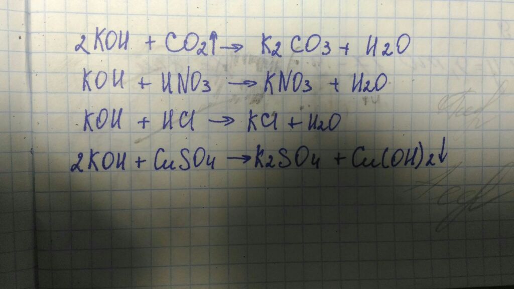С какими из приведенных ниже веществ он будет взаимодействовать CO2, HNO3, Cu(OH)2, CaO, HCI, CuSO4, NaNo3, Al(OH)3? Напишите уравнения соответствующих реакций .
