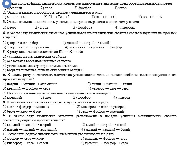Ответ 1 фосфор - сера - хлор