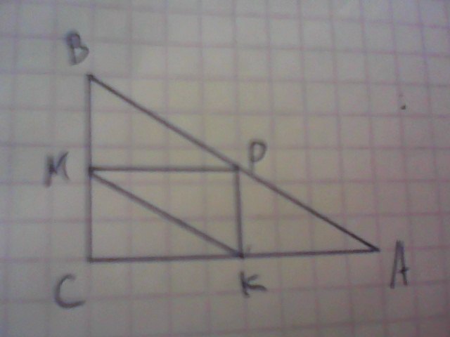 Каждая сторона ΔМРК вдвое короче параллельным сторонам ΔАВС.