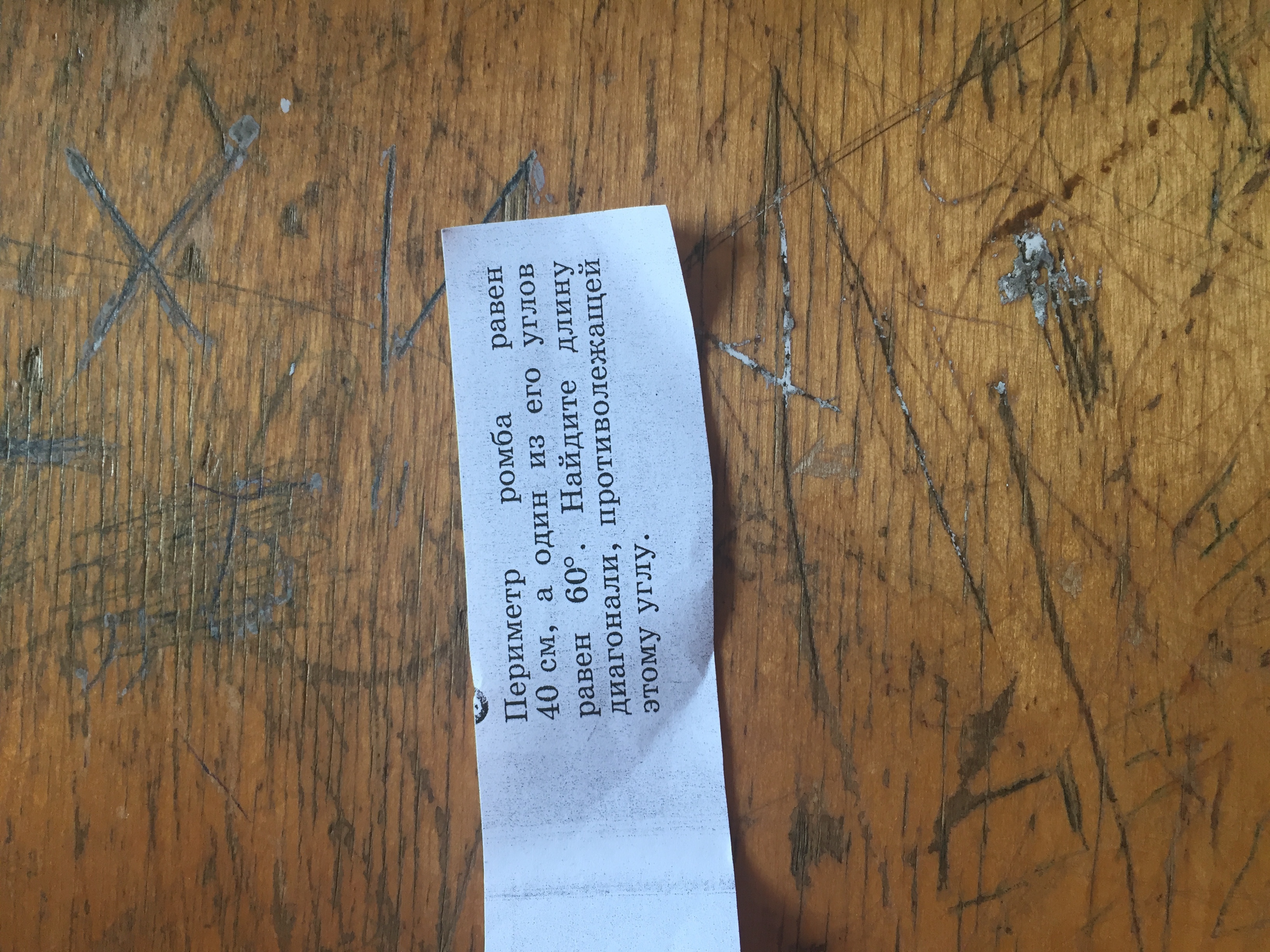 Т.к. фигура это ромб , то стороны равны⇒ каждая сторона равна 10 см.; рассмотрим треугольник , где угол равен 60 - он равносторонний, т.к углы равны по 60° . Значит, диагональ будет =10 см.