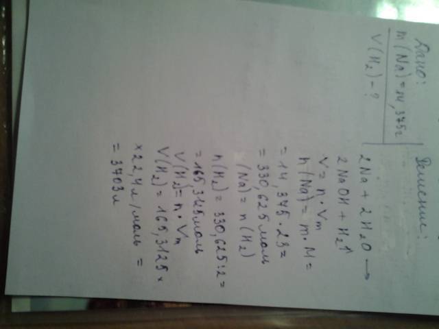 Помогите с задачей по химии: объем водорода, выделившегося при растворении 14,375 г натрия в воде