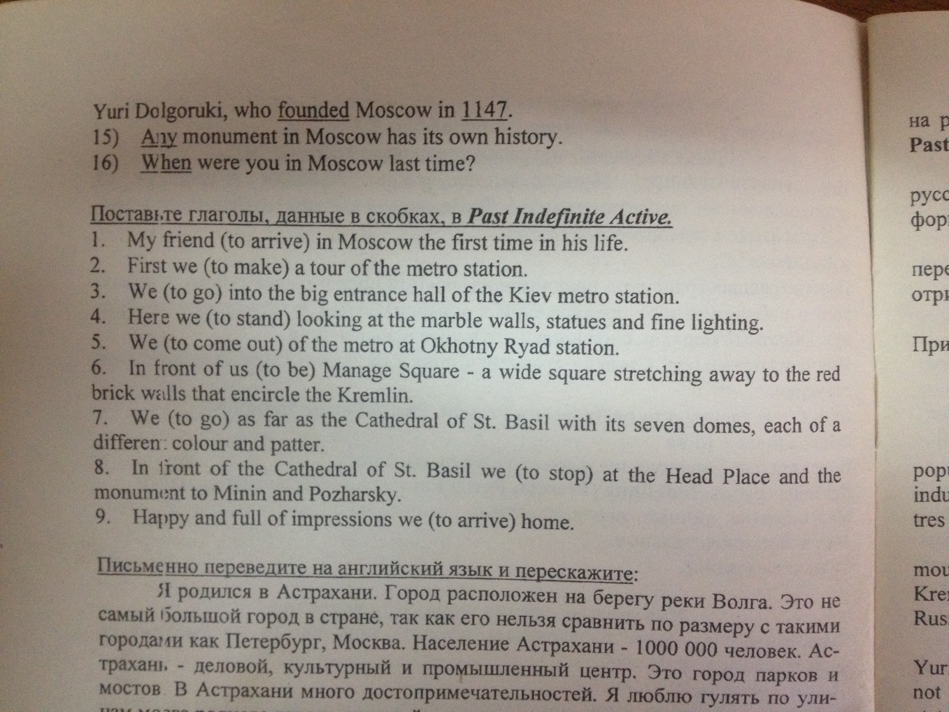 Пишу только то, что нужно заменить, остальное в предложение так же как написано. 1. Arrived 2. Made 3. Went 4. Stood 5. Came out 6. Was 7. Went 8. Stopped 9. Arrived