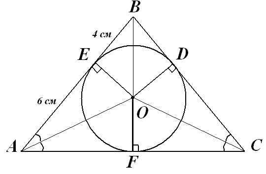 Смотрим рисунок. Поскольку центр вписанной окружности лежит в точке пересечения биссектрис, то угол ЕАО= углу FАО.