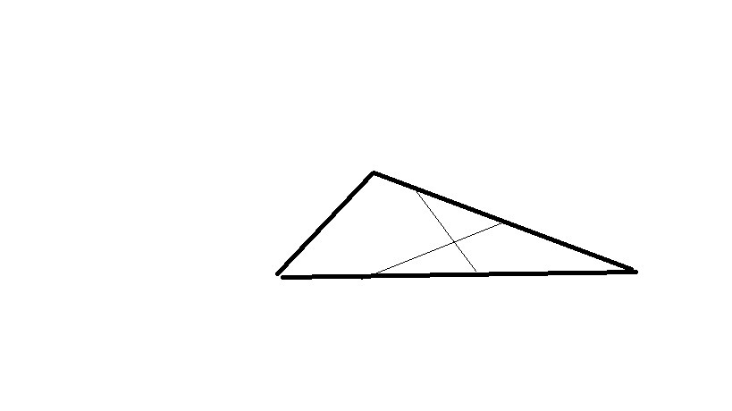 Приведите два отрезка с концами на сторонах треугольника так чтобы треугольник оказался разбит на 2 треугольника 1 четырехугольник и 1 пятиугольник