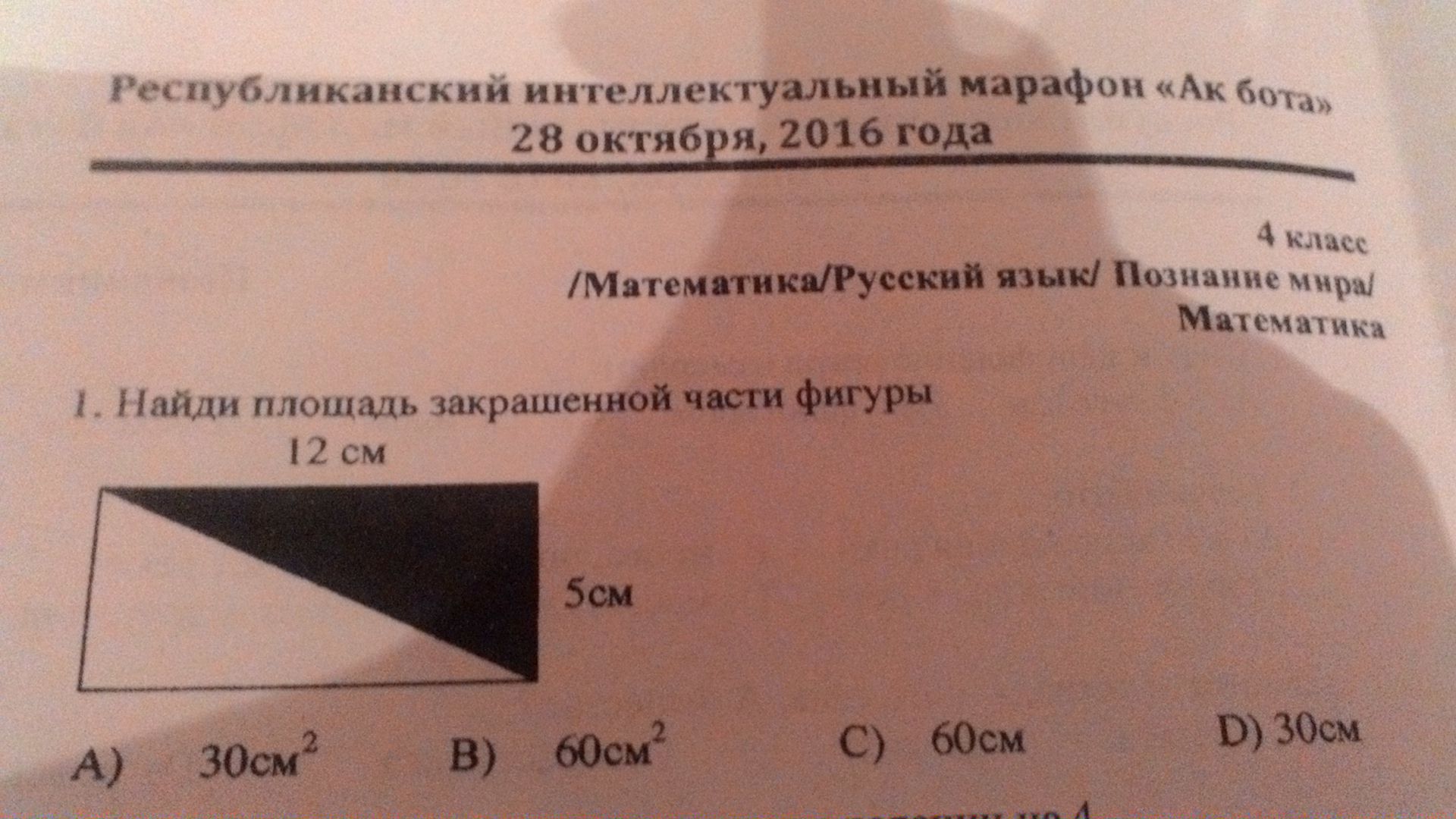 Извините,5*12 будет 60,значит 30,и ответ а,т.к. площадь