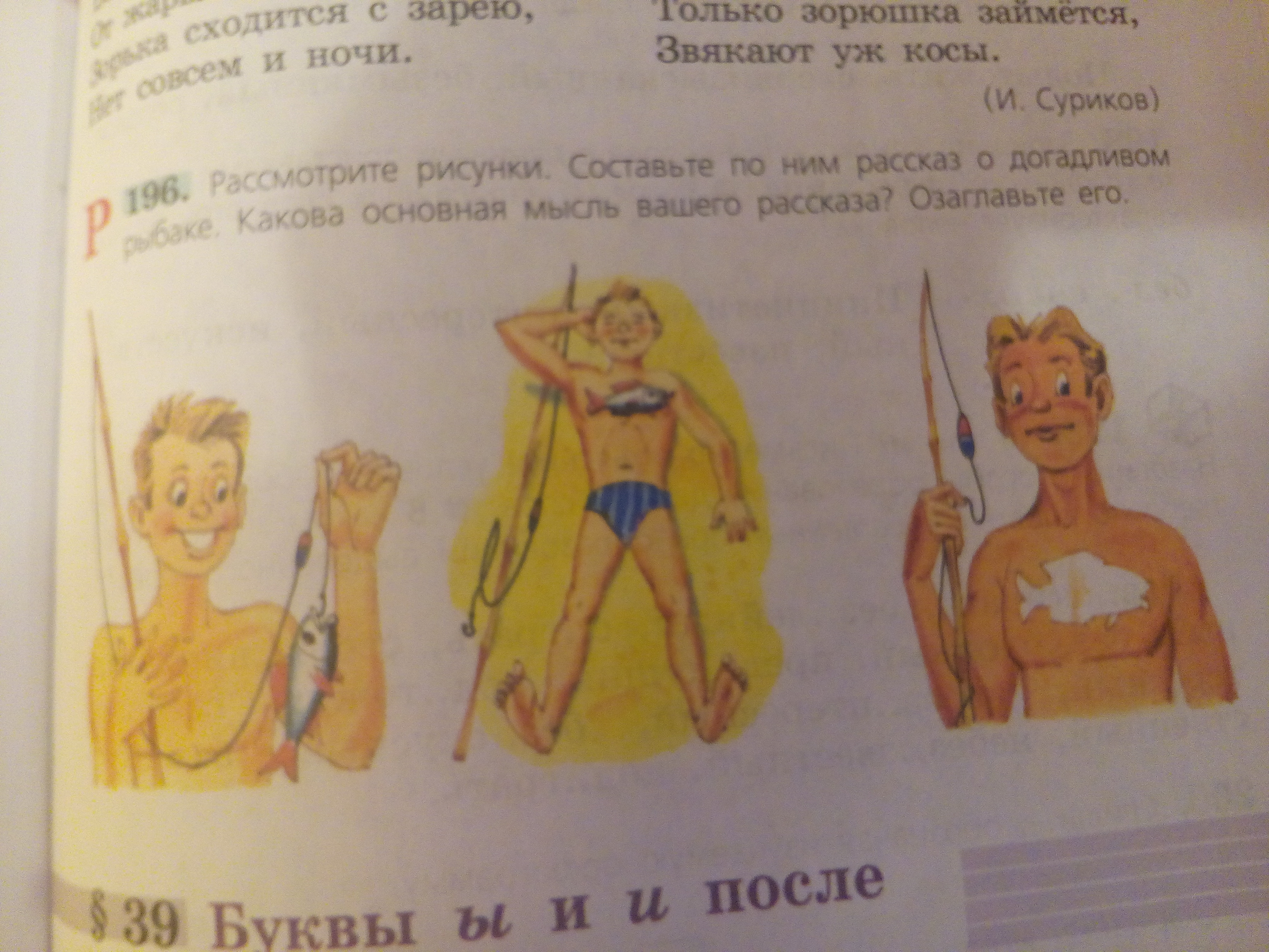 Рассмотрите рисунки. Составьте по ним рассказ о догадливом рыбаке. Какова основная мысль вашего рассказа? Озаглавьте его.