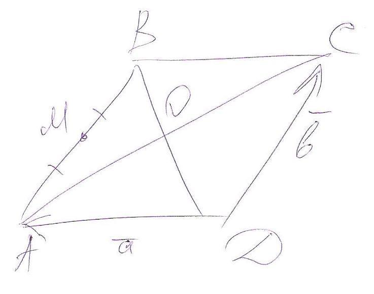 пересчения диагоналей, М-середина АВ, вектор ДА=вектору а,вектор ДС=вектору b.Выразите через векторы а и b следующие векторы: