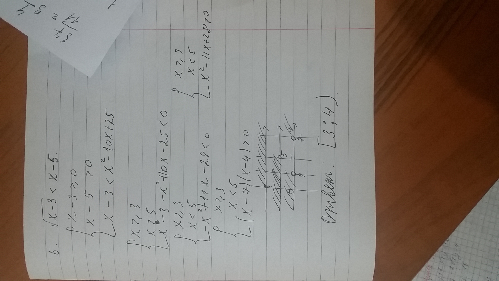 ответ только [3;4)