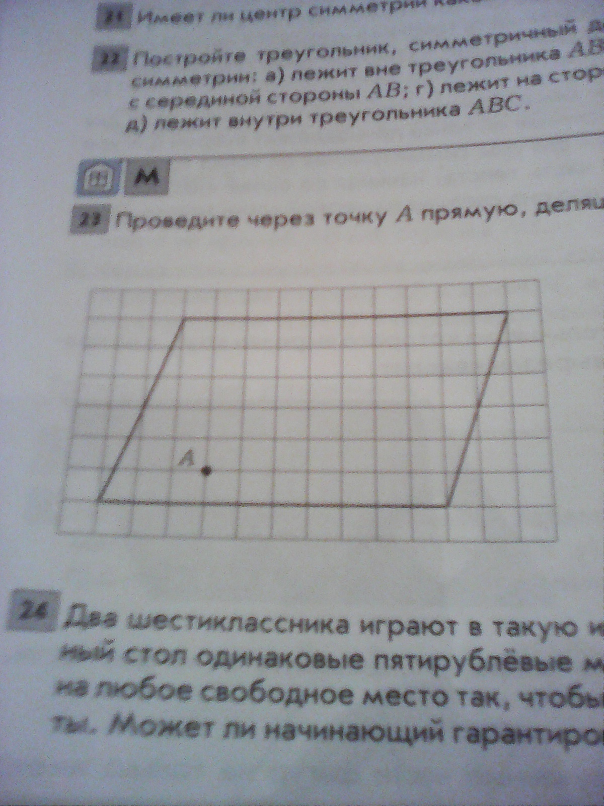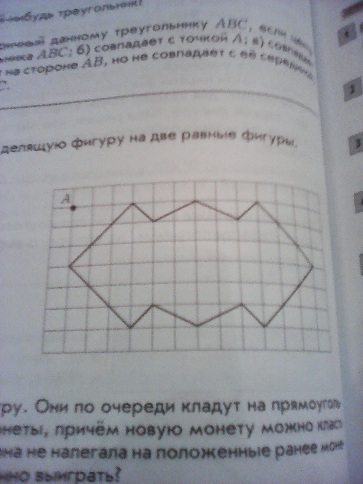 СРОЧНО!!!!!!!!!!!!проведите через тоску А прямую , делящую фигуру на две равные фигуры!
