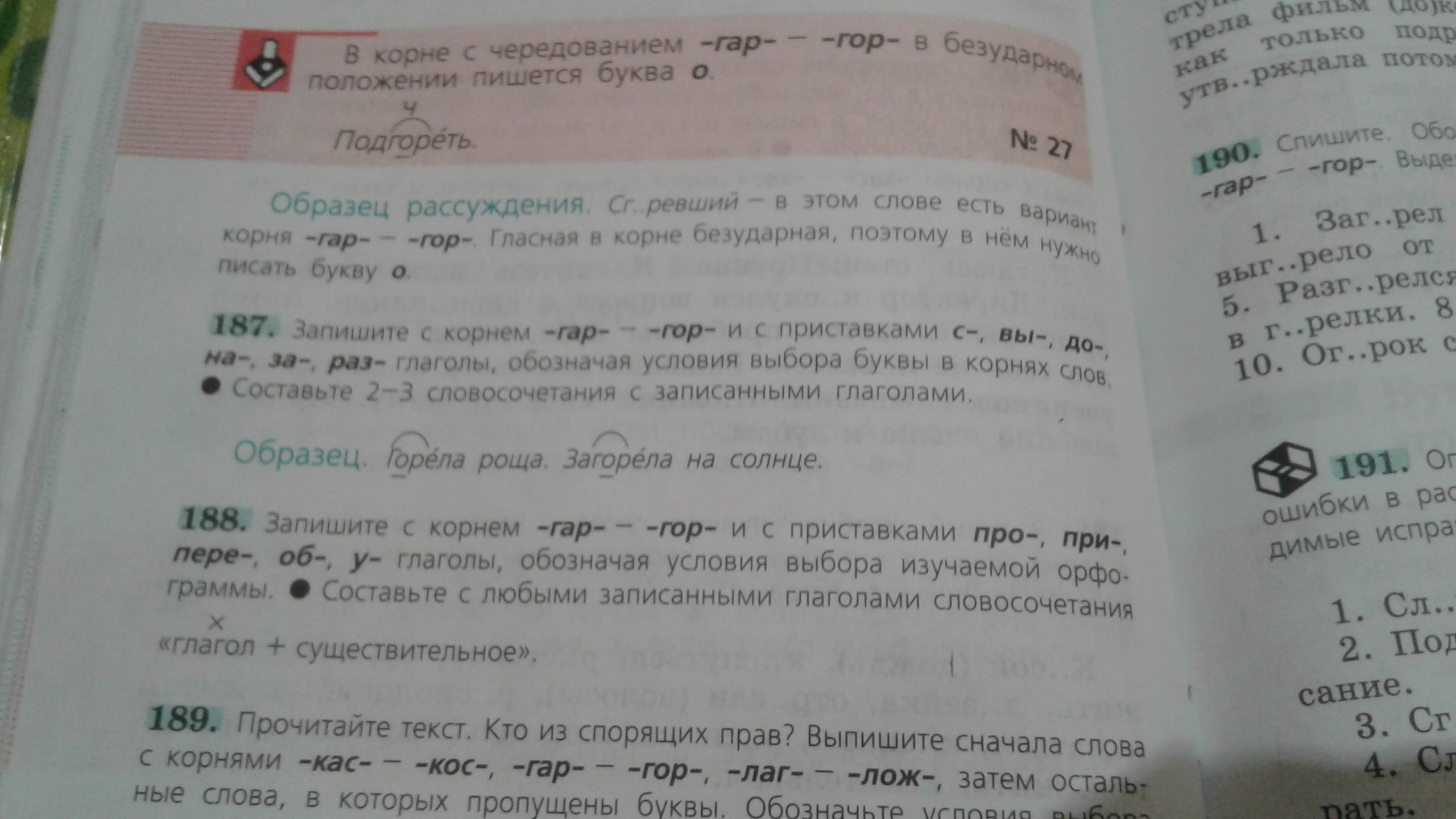 сгореть, выгореть, догореть, нагореть, загореться, разгораться (гор пишется, если нет ударения, гар, если есть). Костер догорает, спичка сгорела, камин разгорелся