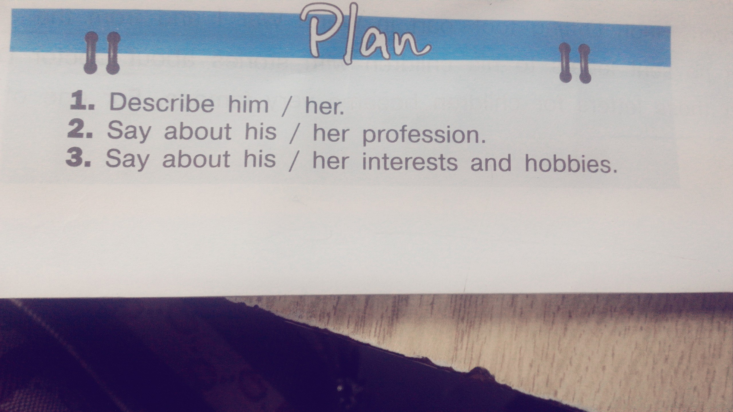 описать её или его.Сказать о его или её професси.Говорить о его или её интересах и увлечениях