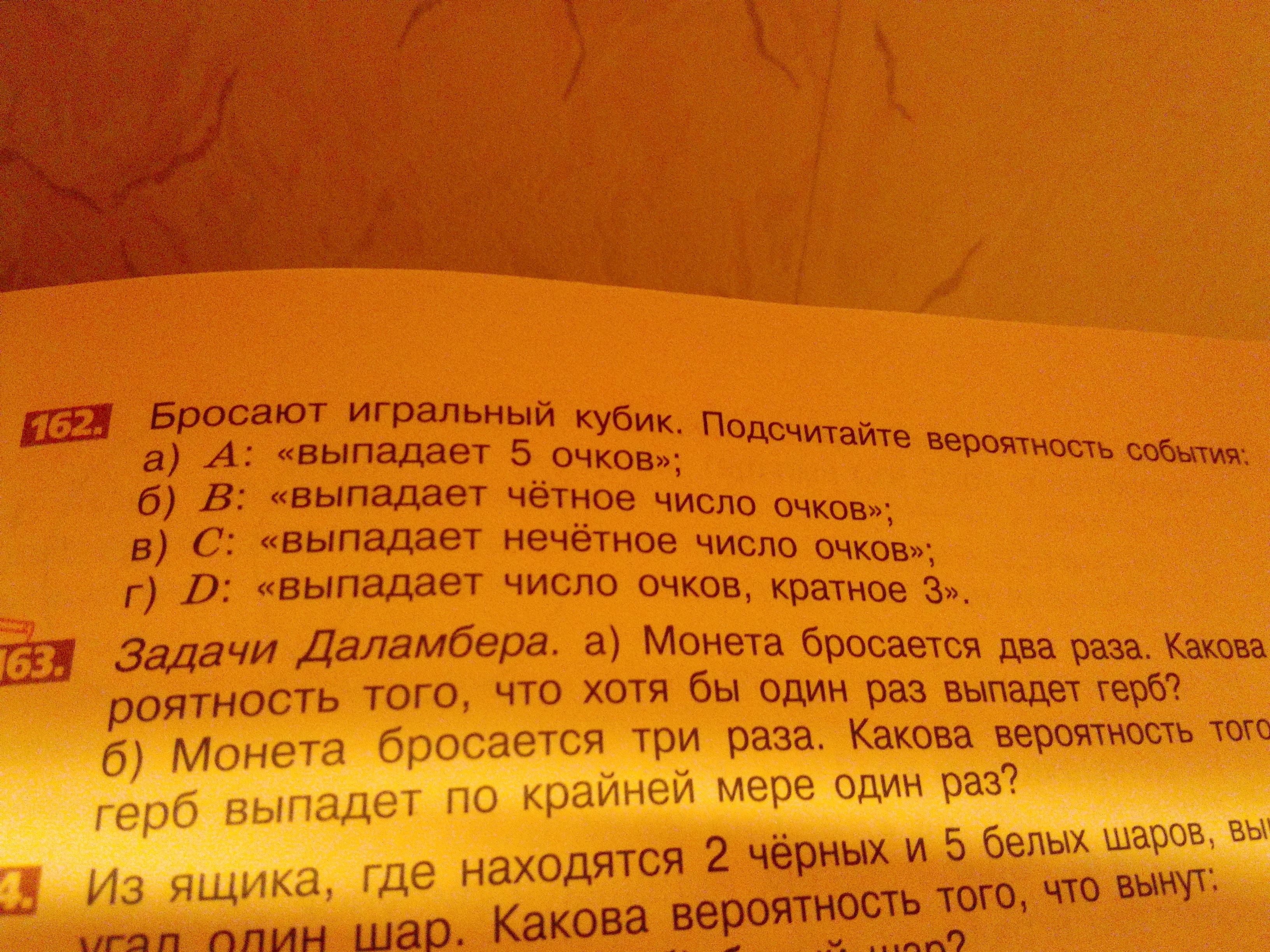 четных чисел 3 это 2;4;и 6 вероятность 3/6или 1/2
