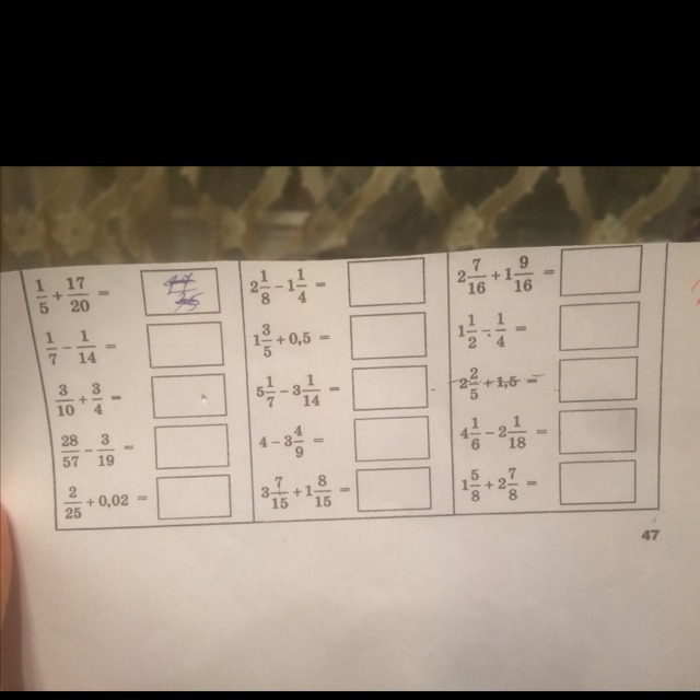 5) 2/25 + 0,02 = 2/25 + 2/100 = 8/100 + 2/100 = 10/100 = 1/10 = 0,1