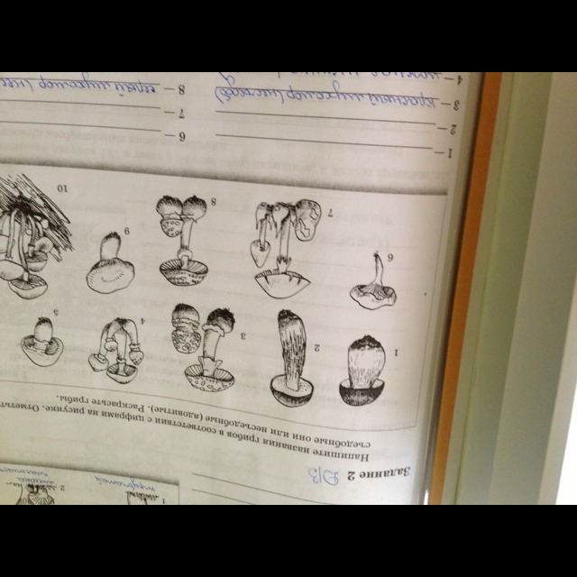 Напишите названия грибов в соответствии с цифрами на рисунке. Отметьте съедобные и несъедобные.