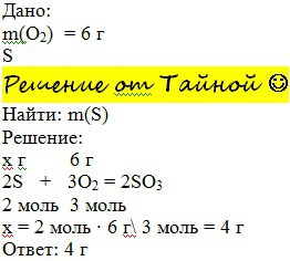 Рассчитать массу серы (IV), которая прореагировала с 6 г кислорода.