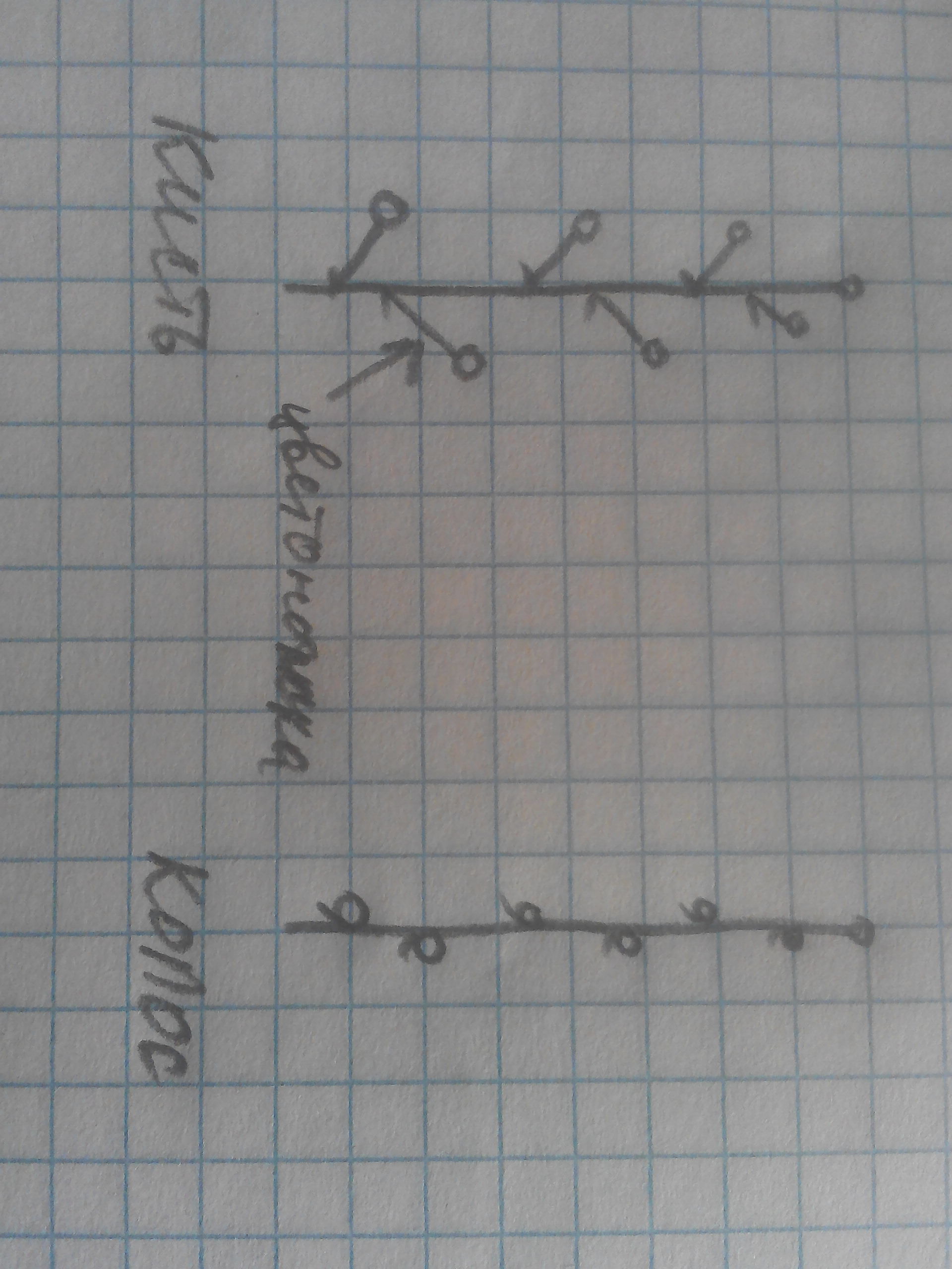 Разница в том, что цветки кисти имеют цветоножки, цветки колоса сидячие (без цветоножек).
