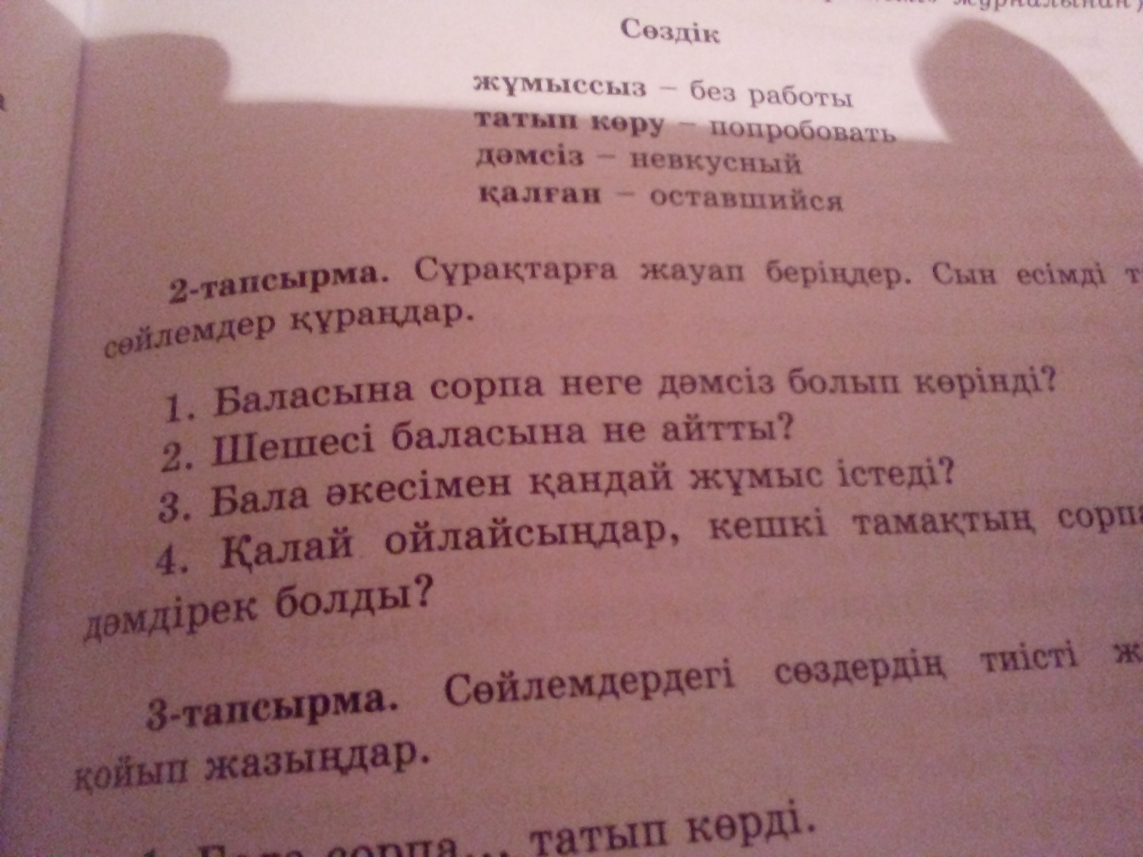 1.өйткені ол еңбек етпеді ,сол үшін оған сорпа дəмсіз болып көрінді.