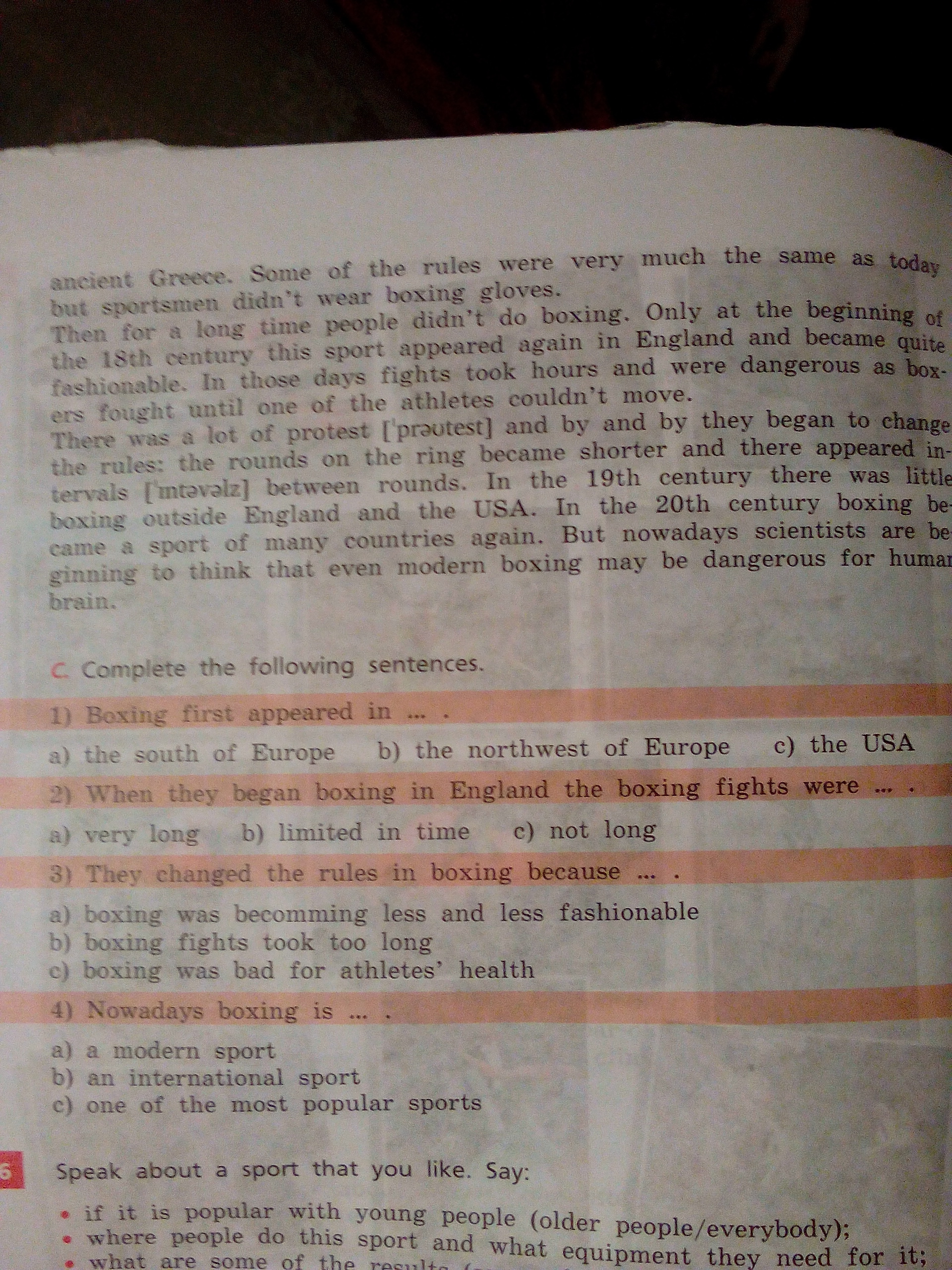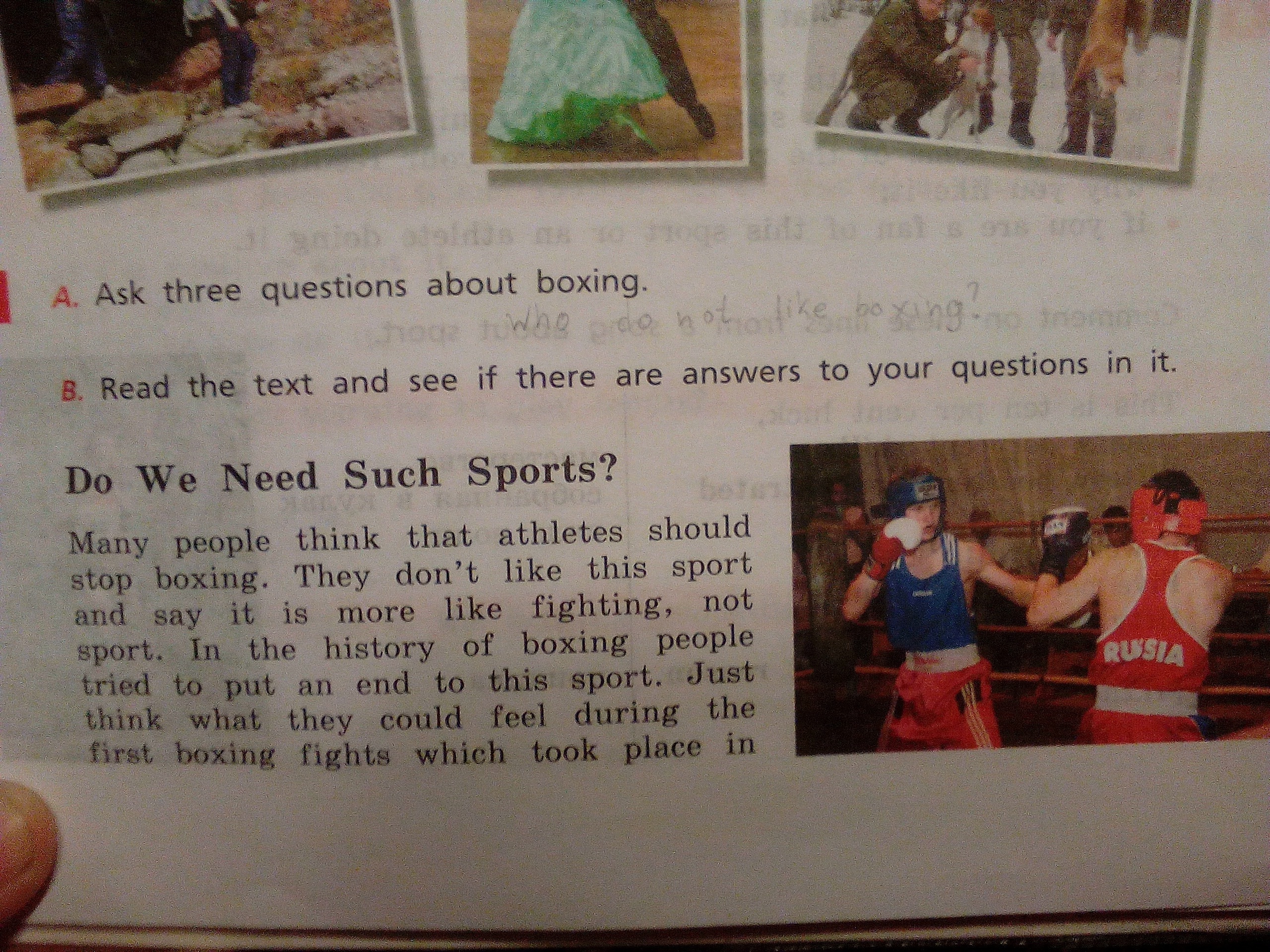 Многие люди думаю что атлетам надо прекратить бокс.Им не нравится этот спорт и они говорят что это больше похоже на драку, не на спорт.В истории бокса люди пытались положить ему конец.Только подумайте, что они могли чувствовать во время первых боксерских поединков, которые заняли место в (дальше не перевел, потому что на фото не видно продолжения текста)