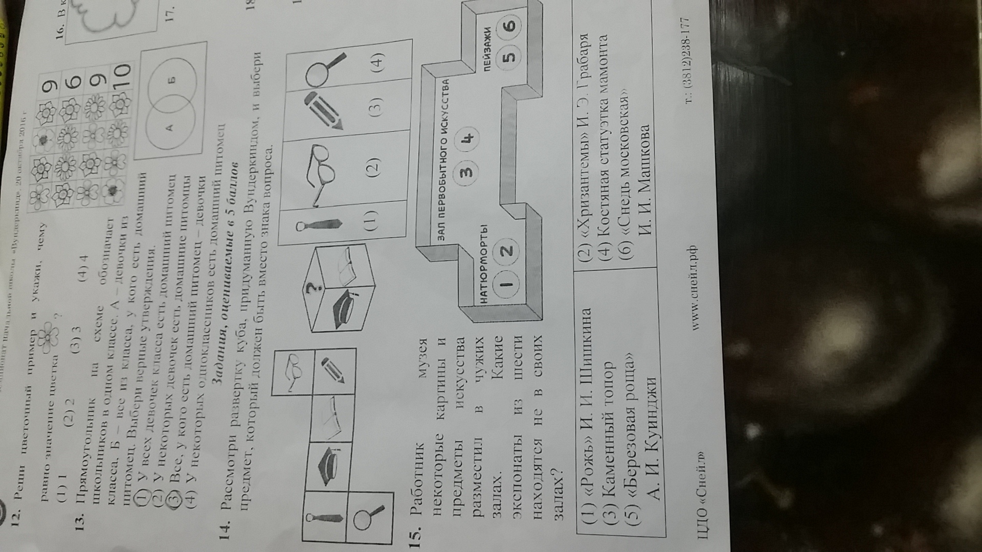 Работник музея некоторые картины и предметы искусства разместил в чужих залах.Какие экспонаты из шести нах-ся не в своих залах