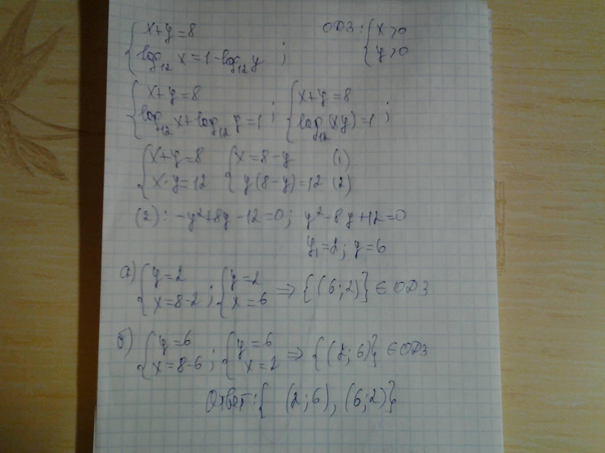 Применены : свойства логарифмов, способ подстановки