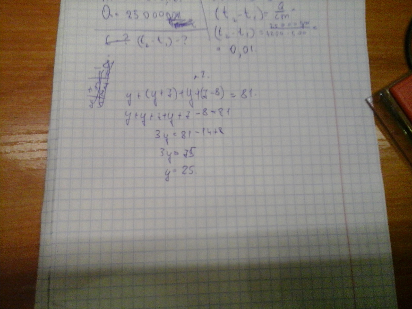 Выражение: y+(y+7)+(y+7-8)=81