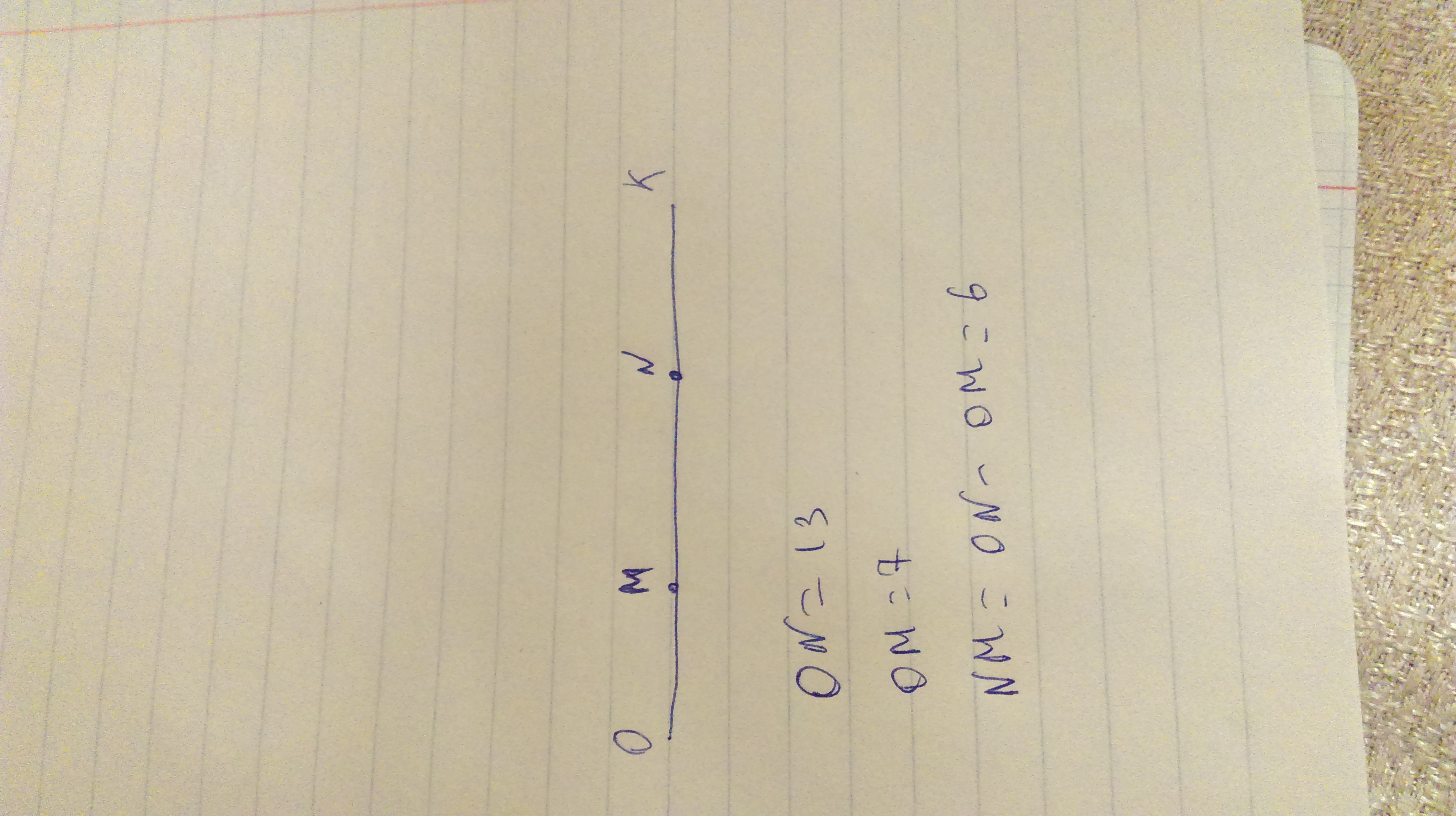 Дан луч ОК. На нем отложены точки N и M так что ON=13см и OM=7см. Найдите длину отрезка NM. Сделайте схематический рисунок