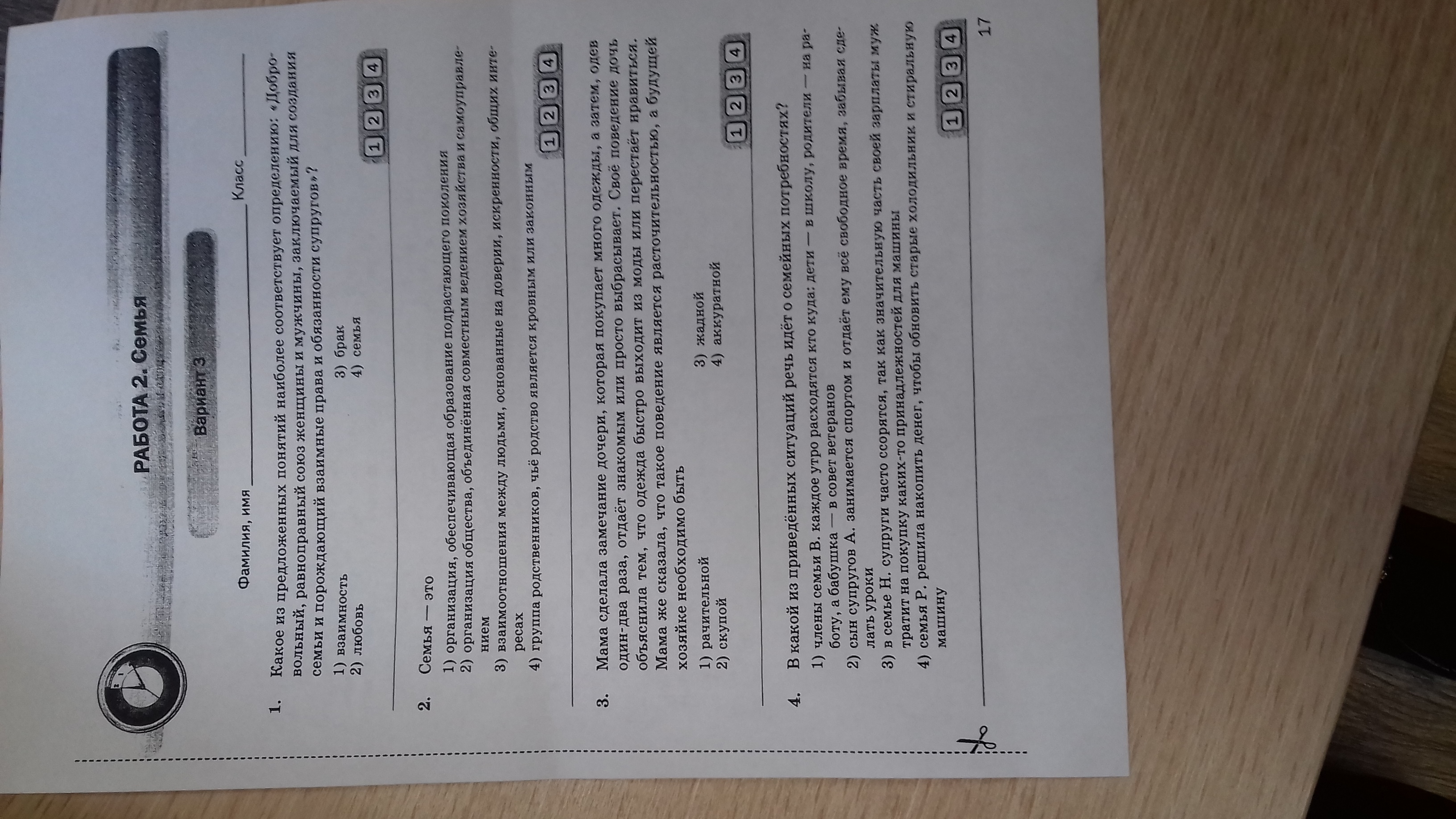 4)4, так как семейные потребности- это осознанная необходимость иметь что-либо духовное или материальное.