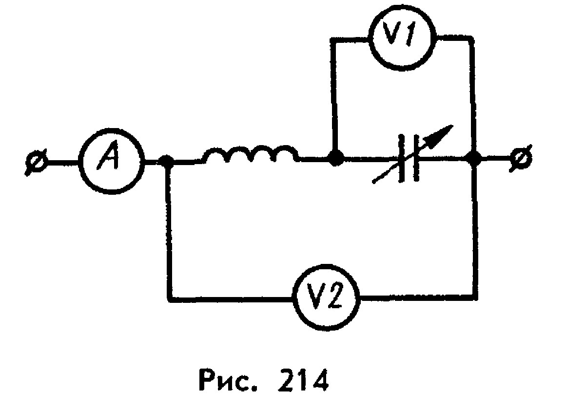 В схеме на рисунке амперметр показывает 3 А, а вольтметры U1 =12 В и U2=24 В. Найдите активное и индуктивное сопротивление катушки, если цепь находится в режиме резонанса.